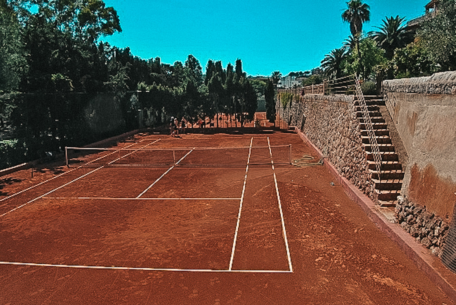 25 m från hotellet ligger hotellets tre tennisbanor. Två av tennisbanorna är grusbanor och en tennisbana är hardcourt. Ni kommer att få spela på både grus och hard court vilket ger en perfekt mix av de två vanligaste underlagen för tennis.